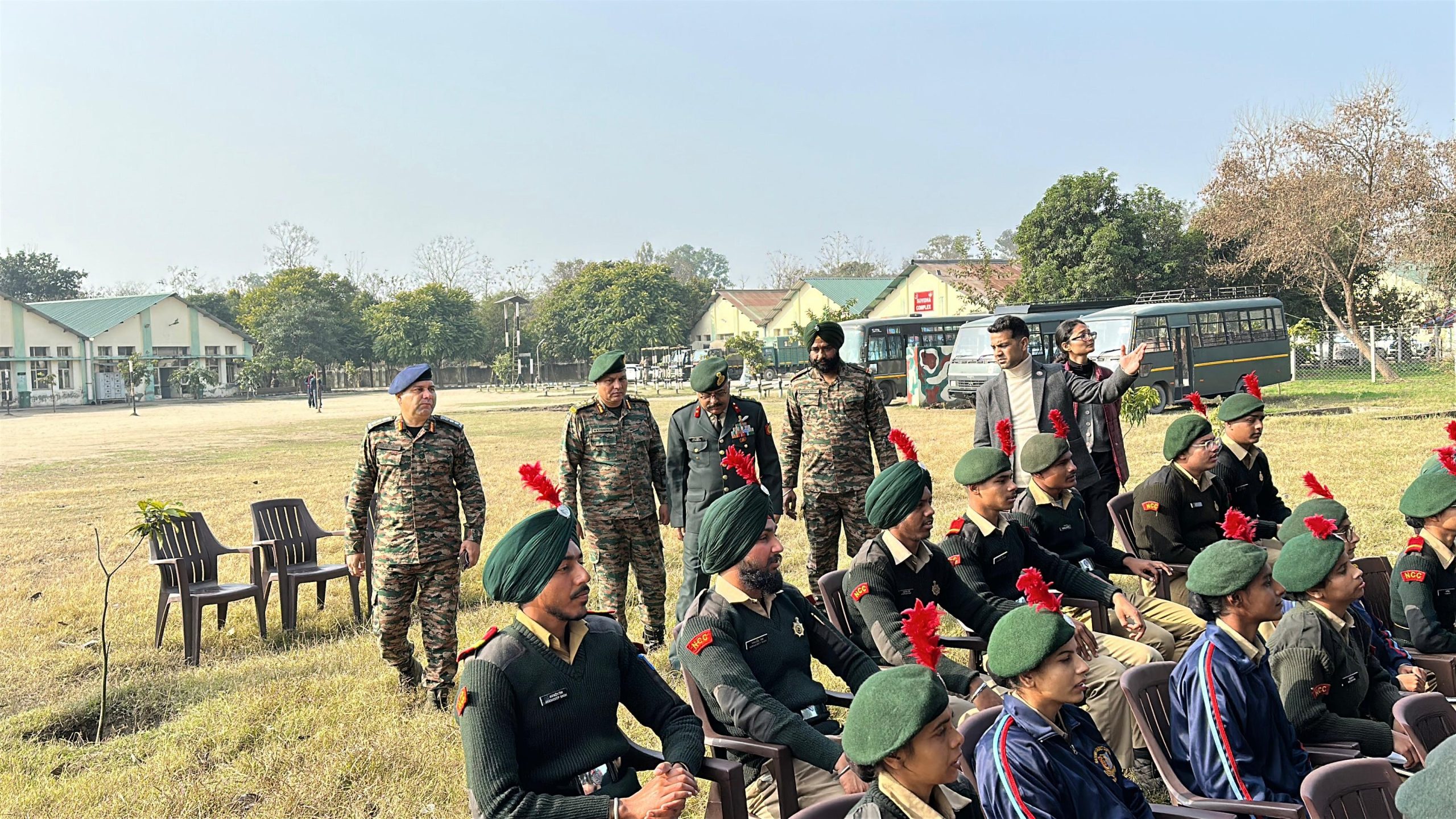 Group Commander Brig Arun Bhardwaj, Group Commander of Jalandhar Group, visited the Yuva Aapta Mitra Scheme (YAMS) camp at NCC Training Academy, Rupnagar on 02 Feb 2026. The camp, being conducted from 29 Jan to 07 Feb 2026, aims to train 300 NCC cadets in disaster management and response.